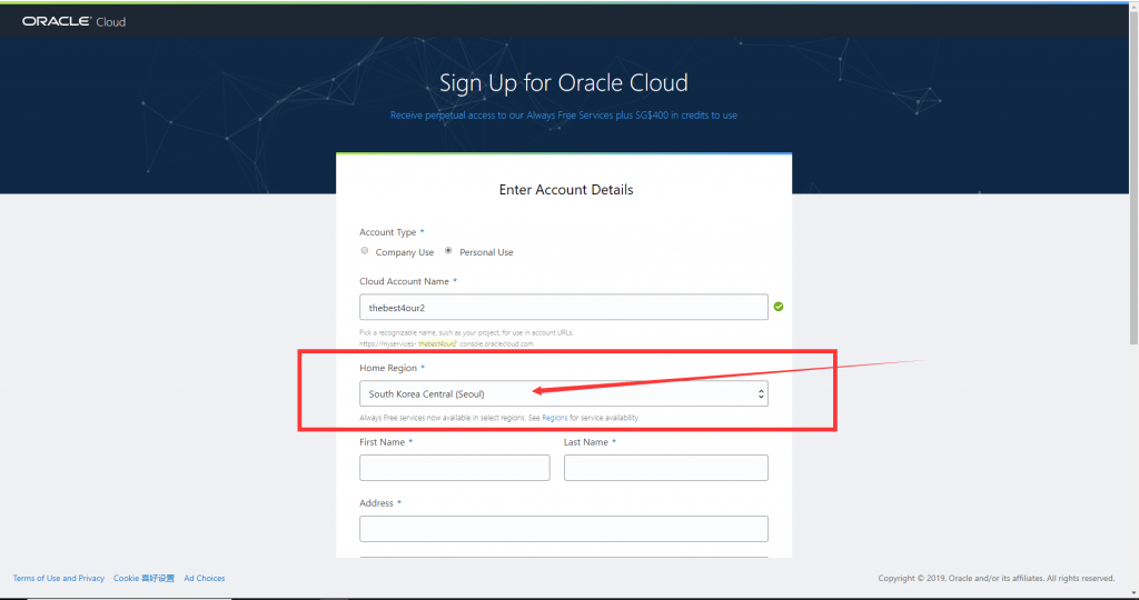 需要注意的是Home Region 需要写你要开机器的地区 这个之后就不能更改了