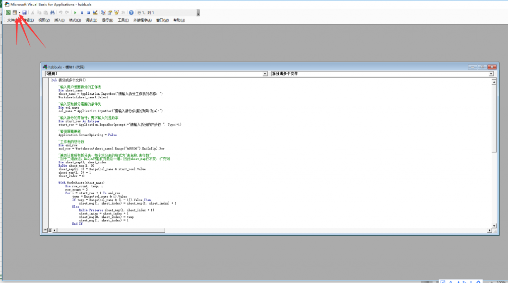 '根据前面计算的拆分表,拆分成单个文件 Dim row_index row_index = start_row For i = 0 To sheet_index Workbooks.Add '创建最终数据文件夹 Dim dir_name dir_name = ThisWorkbook.Path & "\拆分出的表格\" If Dir(dir_name, vbDirectory) = "" Then MkDir (dir_name) End If '创建新工作簿 Dim workbook_path workbook_path = ThisWorkbook.Path & "\拆分出的表格\" & sheet_map(0, i) & ".xls" ActiveWorkbook.SaveAs Filename:=workbook_path, FileFormat:=-4143 ActiveSheet.Name = sheet_map(0, i) '激活当前工作簿,ThisWorkbook表示当前跑代码的工作簿 ThisWorkbook.Activate