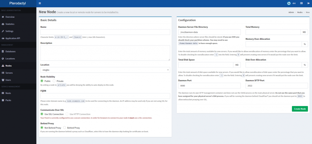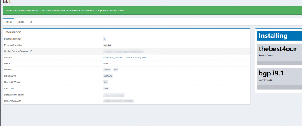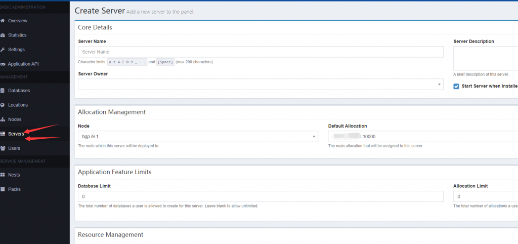 然后回到翼龙面板,新建个server,名字什么的写一下