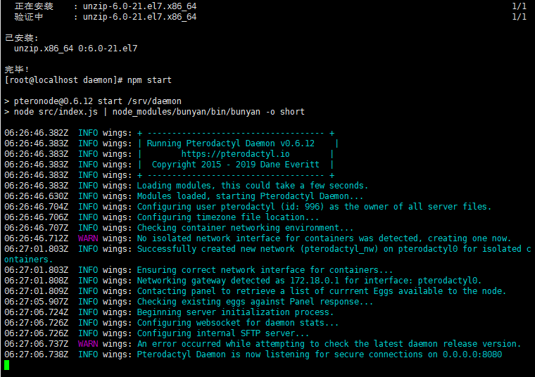 首先创建目录,用于存放程序和服务器数据,创建后进入daemon目录,开始安装后端
