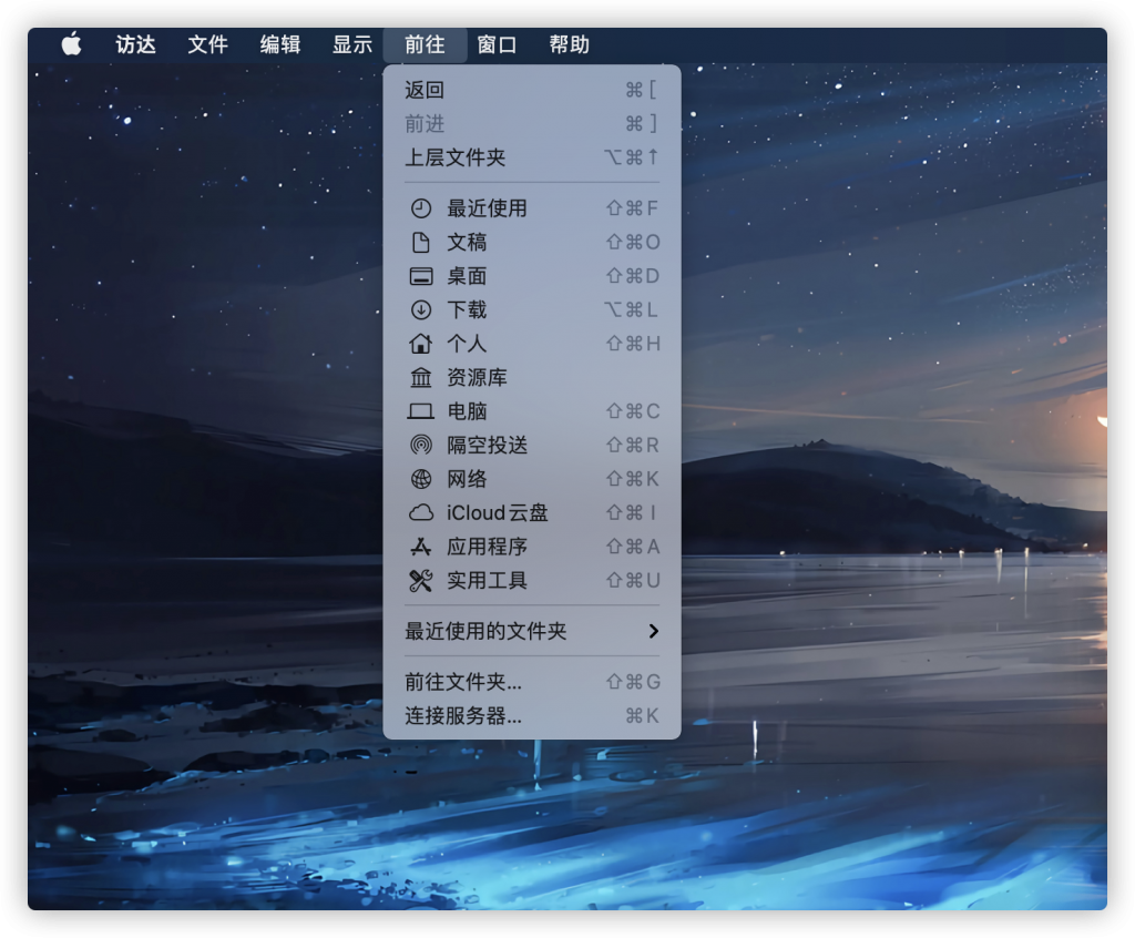 我们打开访达,点这个“前往文件夹”