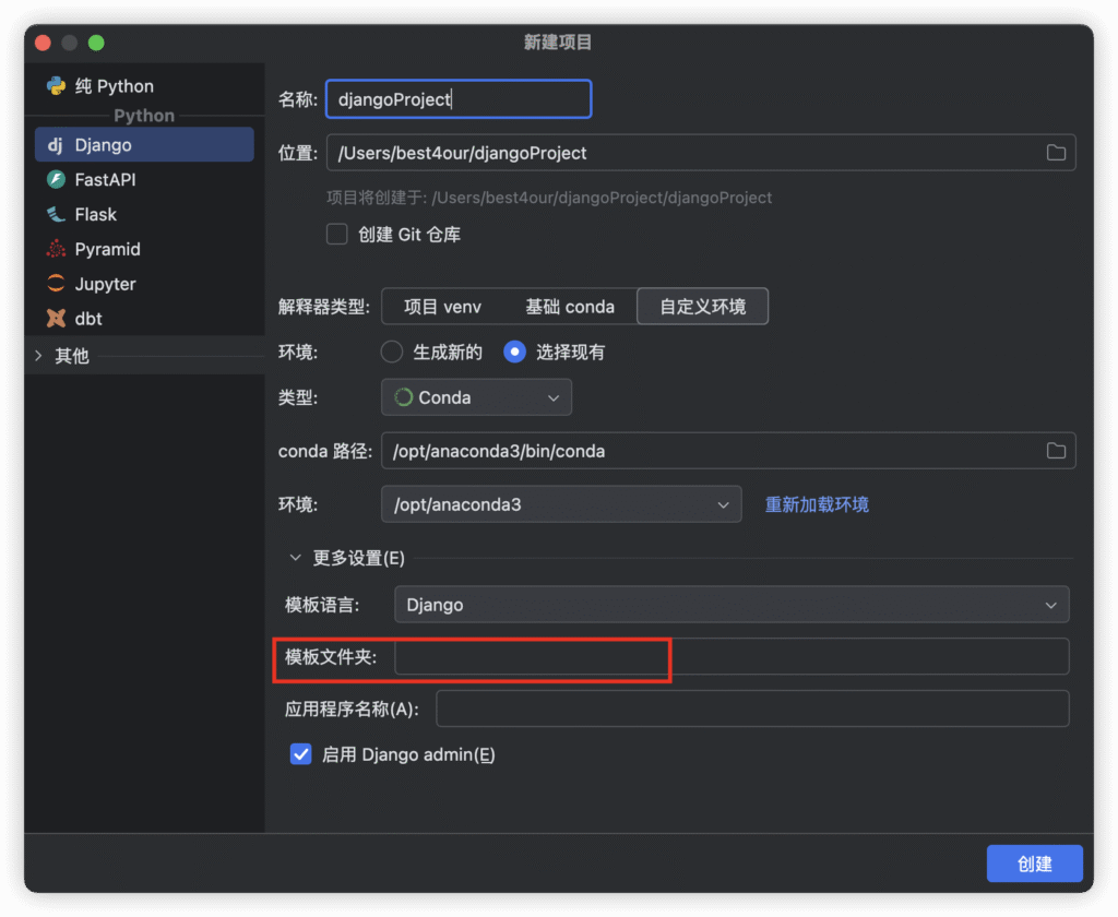 使用pycharm来创建django项目,注意模版文件夹这里删掉,不然会自己创建个template目录供你存放静态文件