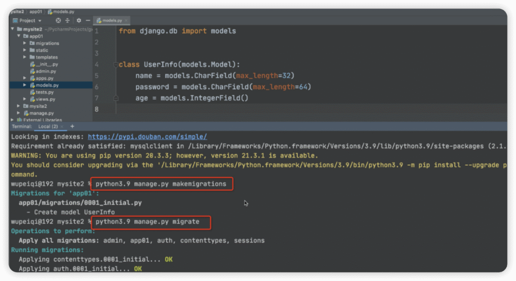 | python3.9 manage.py makemigrations python3.9 manage.py migrate