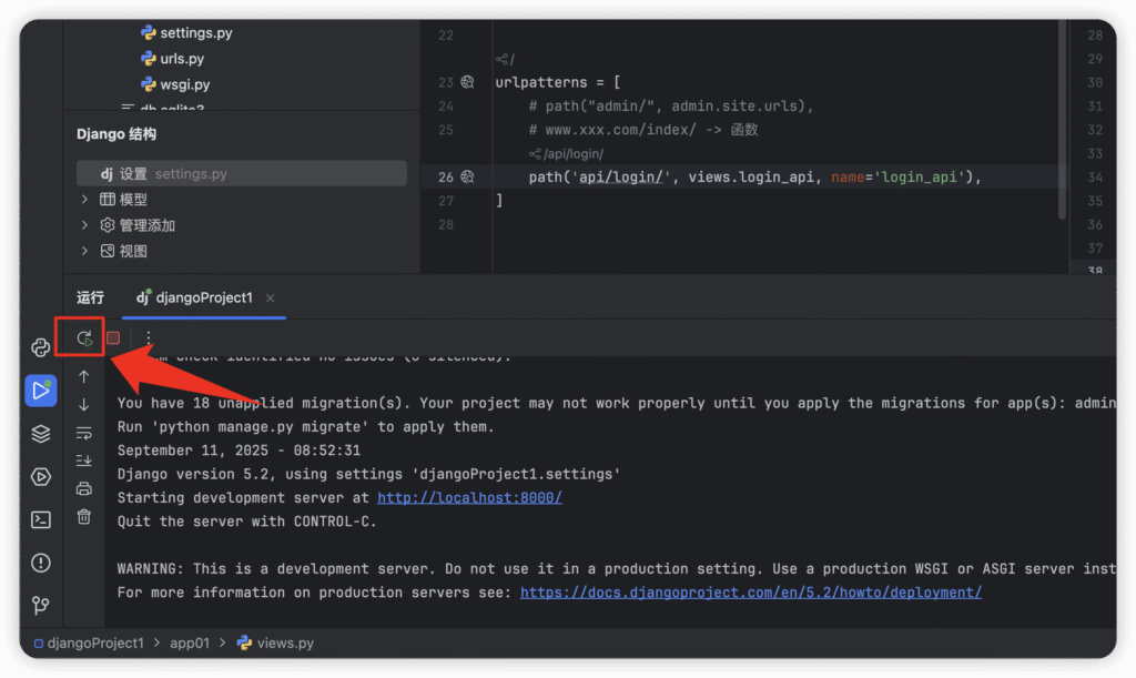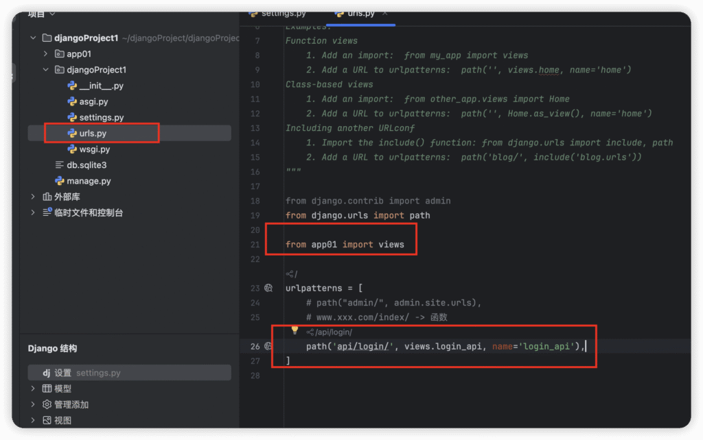 在项目根目录下编写URL和视图函数对应关系 【urls.py】