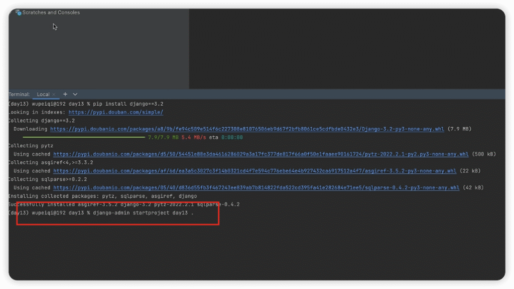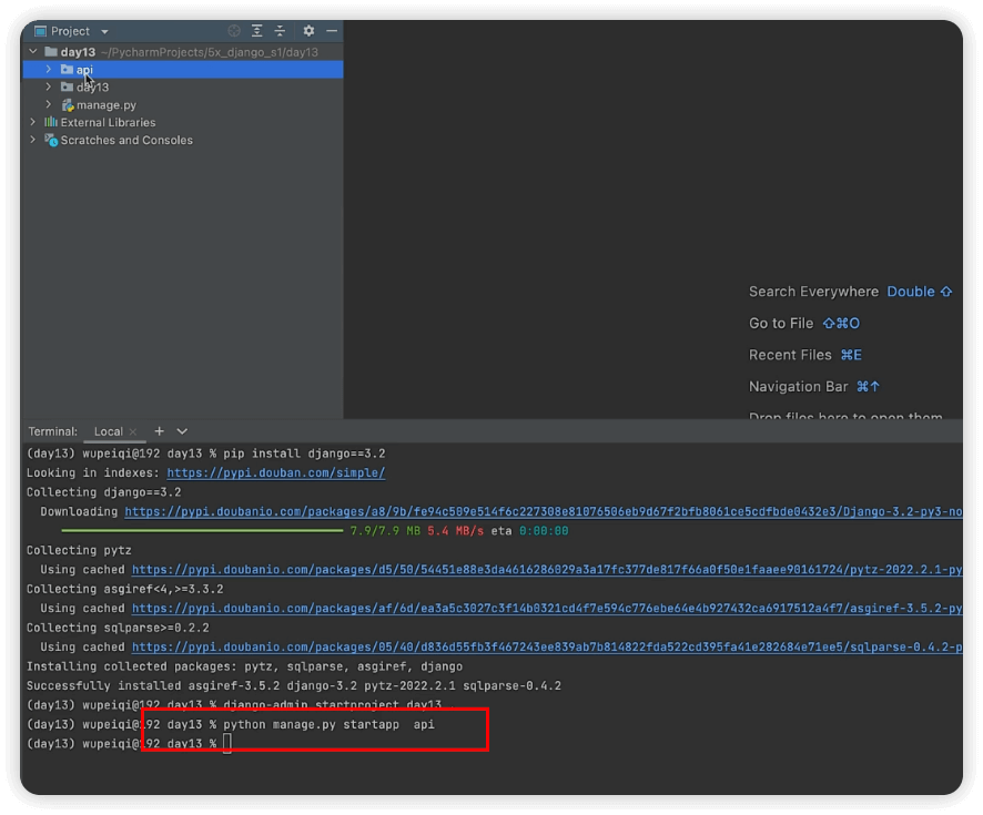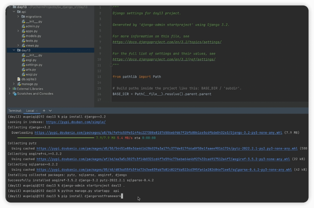 pycharm创建普通python项目,然后安装django,之后创建django项目