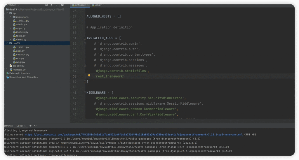 drf本质上是django的一个App,所以安装完以后要先注册才能使用