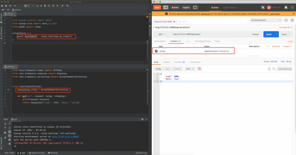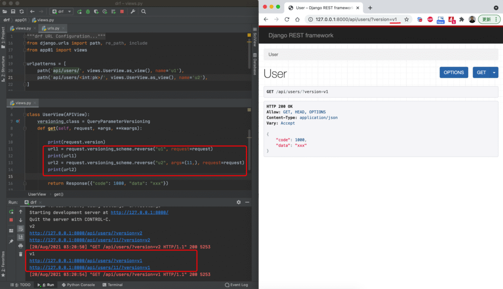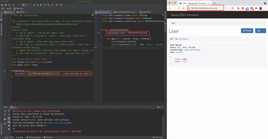| http://127.0.0.1:8000/api/users/?version=v1 http://127.0.0.1:8000/api/users/?version=v2 http://127.0.0.1:8000/api/users/?version=v3