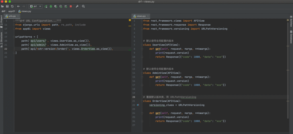 上述示例中,如果想要应用某种 版本 的形式,需要在每个视图类中定义类变量: